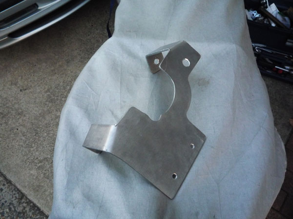 リベットをドリルで揉んじゃいまして、M5のボルトと袋ナットでオーバートルク気味に強固に締め付け!で済ませちゃおうかと思案してたところに、兄がボンデ鋼板とトンカチを持って登場。鋼板をぶっ叩いて、即席スタビライザーを製作していただきました。これをフェンダーの内側にあてがってステーと共締め!(もちろんオーバートルク気味に)