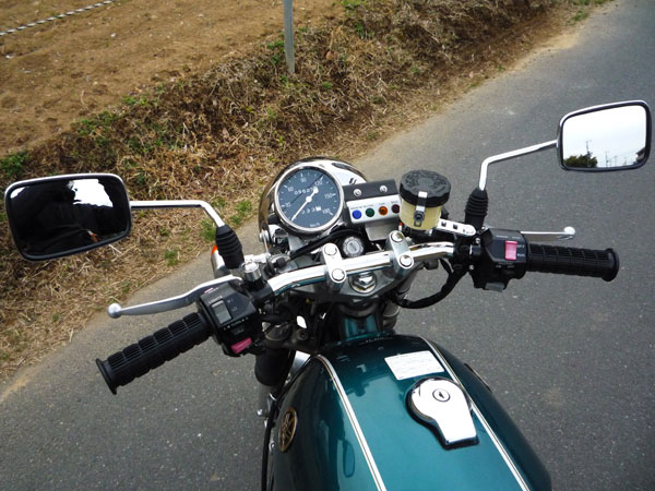それはそうと、一文字ハンドルにしたり、ブレーキマスターシリンダーを社外にしてから、ミラーがどうもうまい位置に来なくて苦労してたが、ここにきて漸く決着が付いた(と思う)。後ろが見えるってすばらしい。