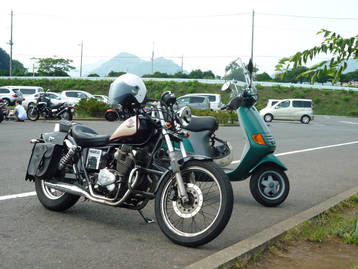 暑いからか、バイクも車も全然いない。駐車場ガラガラ。