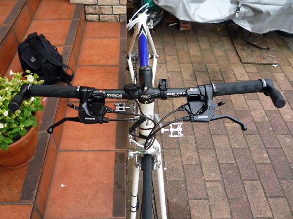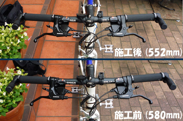 ほいで、乗ってるとハンドル幅がちょっと広いか?と思うので、詰める。