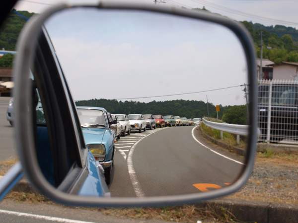 窓とキャンバストップを一緒に空けると、窓からガンガン走行風が入って、上へ抜けるから涼しくてよいのだが、髪の毛がモヒカンになる。どうなんだろこれは。