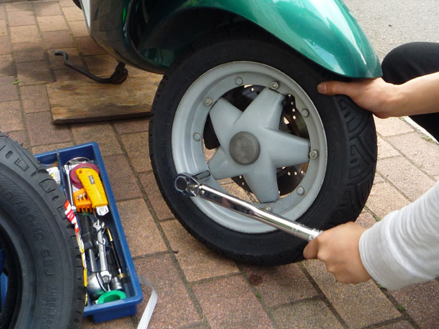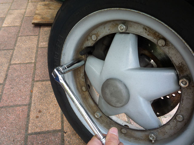 とりあえず13mmのディープでホイールを外しますよ。