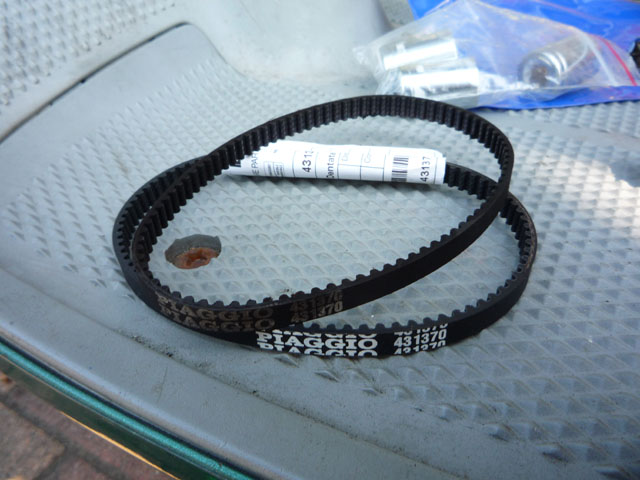 ベルト新旧。まだ使えそうな気がするが、千切れたりすると切ないので交換交換。