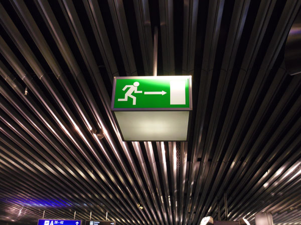 日本に比べるとやや急ぎ気味の非常口の人