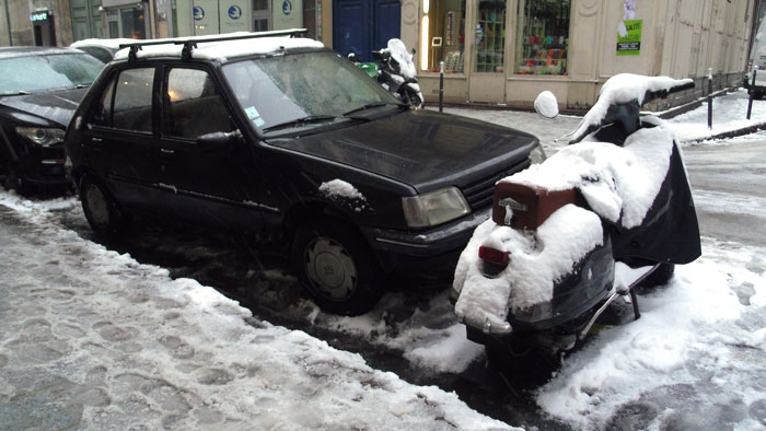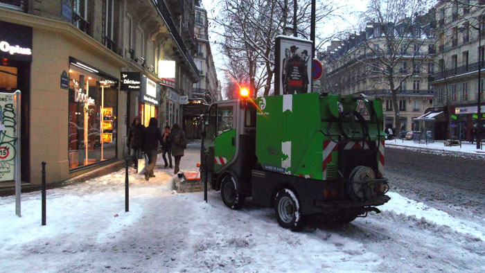 除雪はピアジオ方面の清掃車的な車でブラシでゴシゴシ。