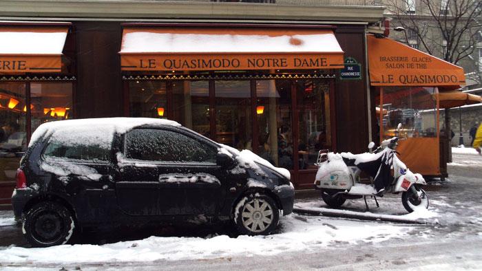 明け方にパリで下ろされる。お店はやってない時間帯なので、トイレ行ったりして時間をつぶす。