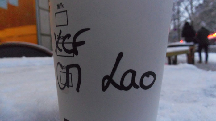 スタバで名前を聞かれてカップに書かれる。誰だラオって。