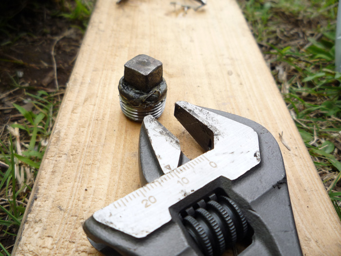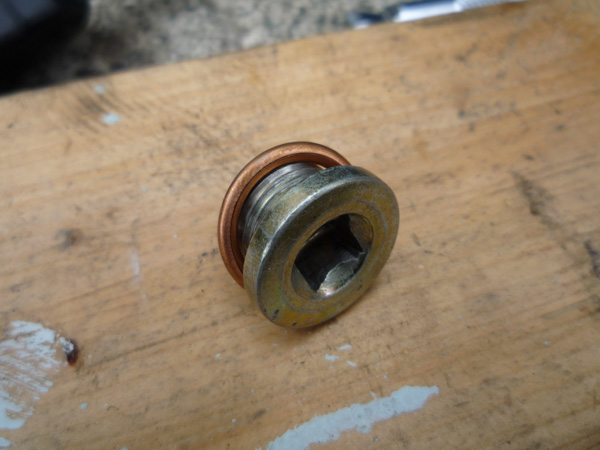 おなじみの四角い穴のドレンプラグ。