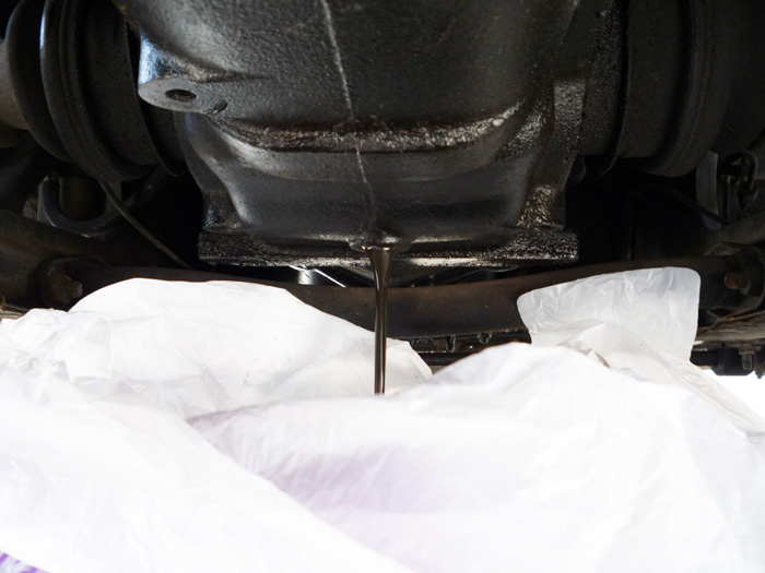 あ、漏れてる。ドライブシャフトのところから。