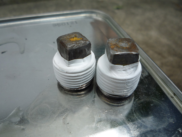 古いオイルを抜いている間、プラグにシールテープを巻き巻き。