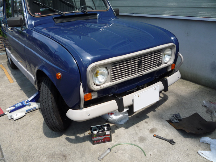 今回も、あいかわらず地面が水平じゃない駐車場で作業でございます。