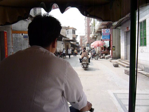 なので3輪タクシーに乗る。自転車の後ろ半分リアカー的な乗り物。