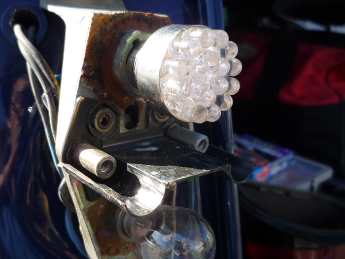 テールのW球は21/5W×2個。これをLEDにすればいくらか省電力ではないかな?