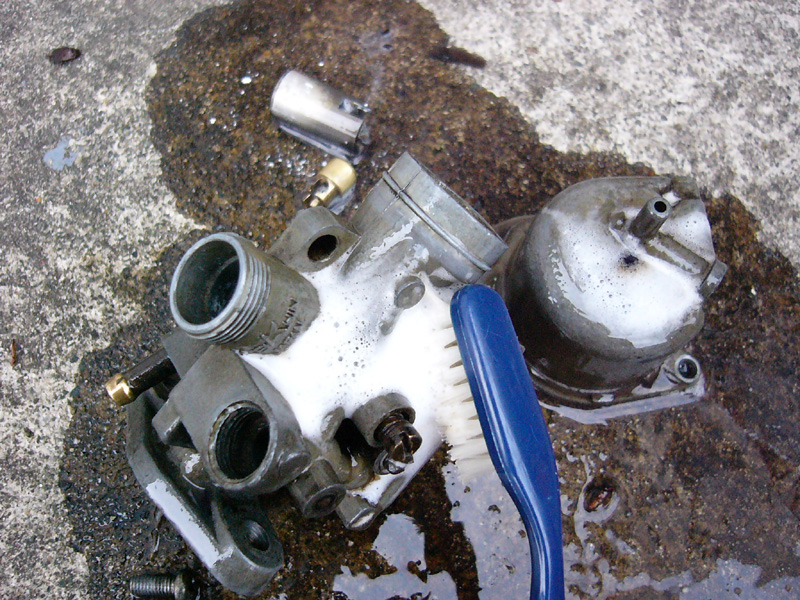 パッキンなどのゴムパーツをはずしてから、エンジンコンディショナーの泡をこってり盛って
