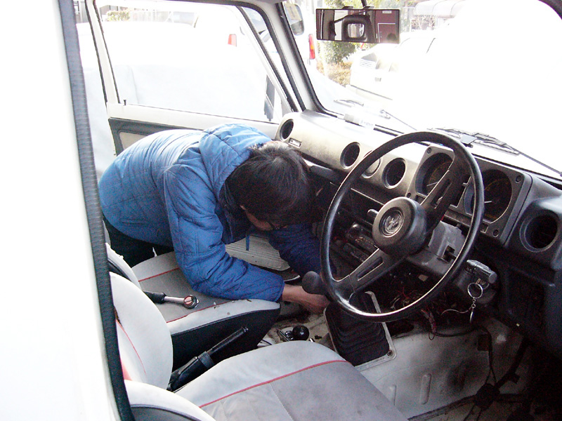 ダッシュボード下部のメンバーを留めるボルトに共締め。よしよし。