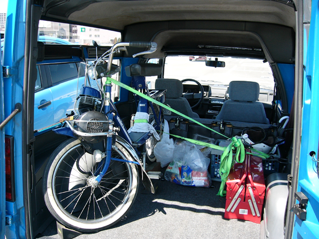 いや~エクス便利ですわ。900×900mmのベニヤなんかひょいひょい載っちゃうし。1800×900mmのスタイロフォームはさすがに無理だんべとおもったら、やわらかい素材が幸いして曲げたら入った!Σ(・ω・ノ)ノ ナヌ!
