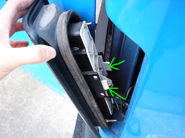 荷室内のテールランプ裏側にある、樹脂製のネジネジを2本ゆるめまし。(写真は車体右側です)