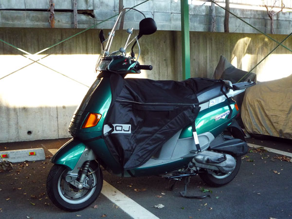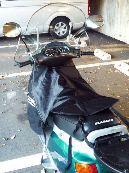 あ、これいいかも。脚の寒さが軽減されるっていいね。カバー後部はエプロンのように上半身にかける。