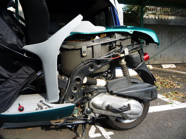カバーのボルトが一個だけ外装の影に隠れていて、外装を剥がさないとボルトが回せないのですよ。