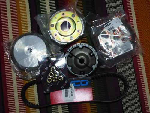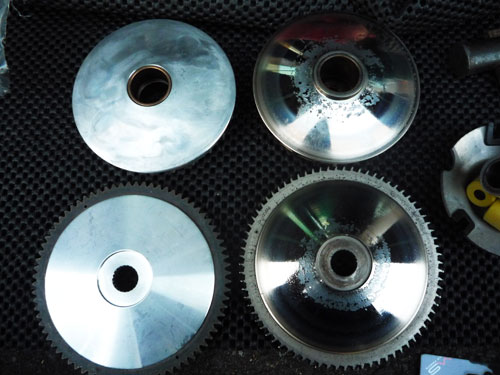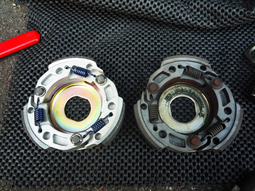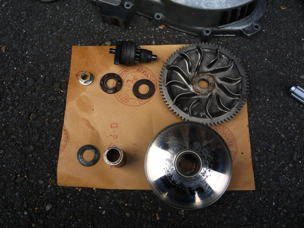 クラッチはあまり減ってないのだが、ややツルツル。クラッチベルは砂や錆粉を噛んだようで結構痛んでいる風。この辺の部品を買っておいたのでとりあえず交換して、古い部品は後日手入れをしてスペアでとっとく。