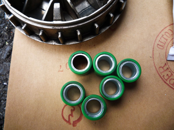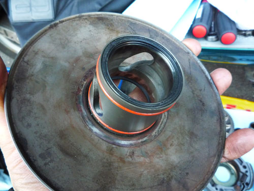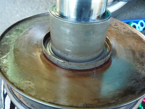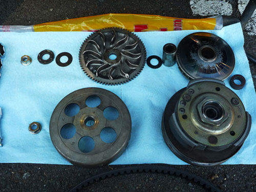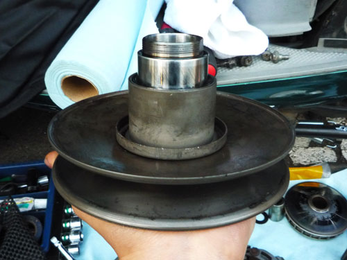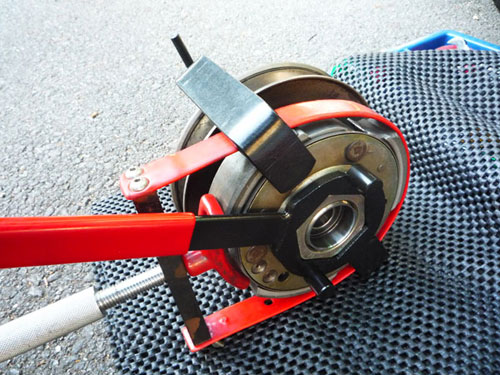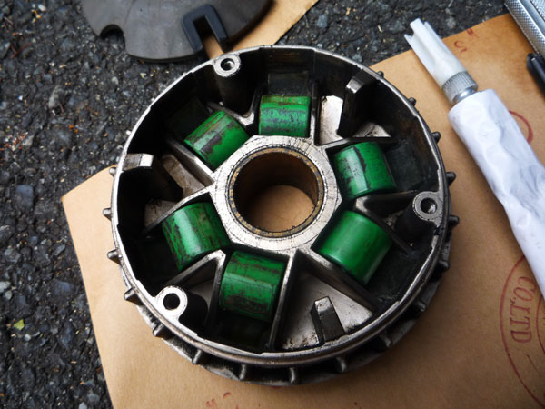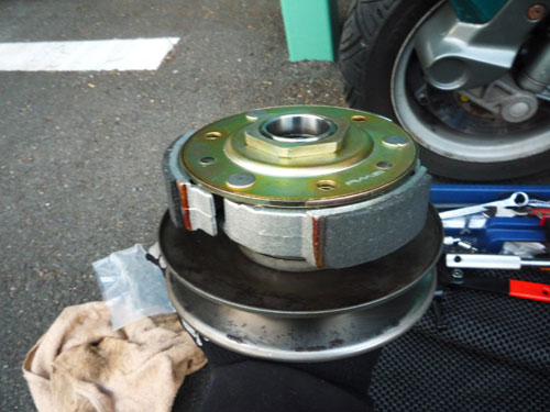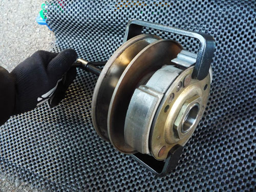 また、激しいスプリングテンションでボヨンボヨンしながら新しいクラッチをプーリーに組み付け。