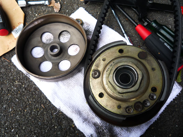 クラッチが滑ってる的な原因だと思うのだが、プーリーフェイスのメッキが剥がれてるし、もういろいろ大変だぁ。などと、布団に潜り込んで目だけ出して震えていたのだが修理しないことにはどうにもならない。