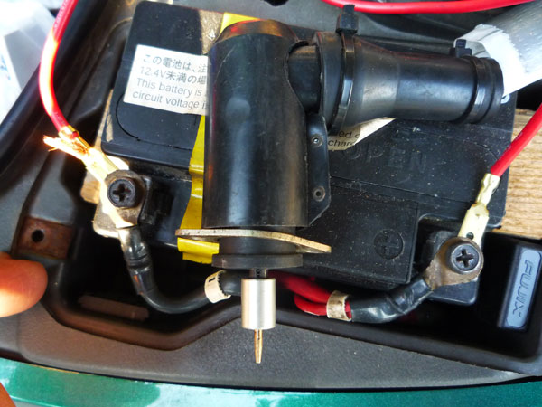 ほいで、もとのオートチョークが再登場。一応動作確認でバッテリー直結でしばし観察。