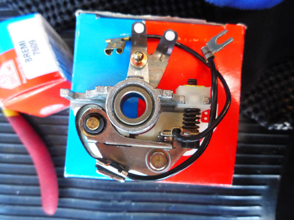 キャトルのデスビつったら、DucellierだSEVだBoschだとみんなワイワイ楽しそうだが(?)、我が家のはなぜか珍品マレリのデスビでございます。ええ。ポイントの交換はアームだけとかじゃなく、ユニットごと交換。まあそんなに高い部品じゃないから丸ごと交換しちゃったほうが安心っちゃ安心だわな。