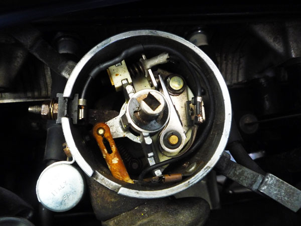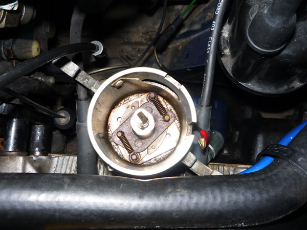 細心の注意をはらってなんとか古いポイントを取り外した。下にはガバナー進角部分が見えちょる。