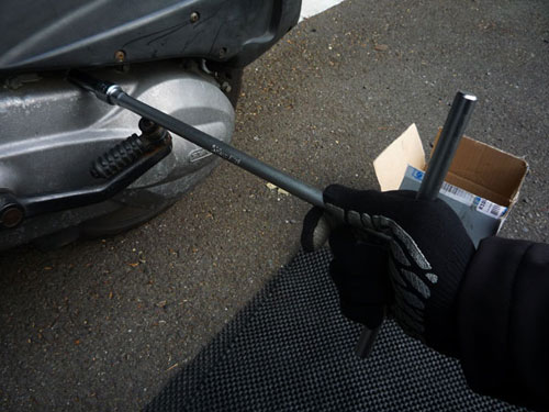 ジリジリレンチに体重をかけていくと、なんとかナットが緩んだ。