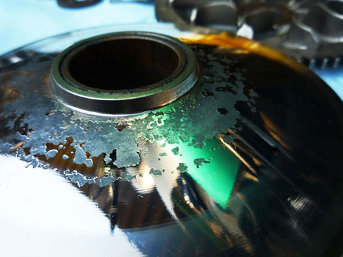 ドライブ側のプーリーのメッキがやばい。まじやばい。メッキがはがれた部分はクレーターのようになってしまっている。凹凸で摩擦係数がベリーグッドになってベルトがばっちり食いつくんじゃね?とか出どころ不明の前向き発言をしてみる。あ、だめですか。そうですか。