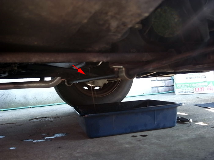 ドレンの位置の関係で、スタビにじゃーじゃーオイルがかかるんだす。スタビの錆止めにいいね。てへ。