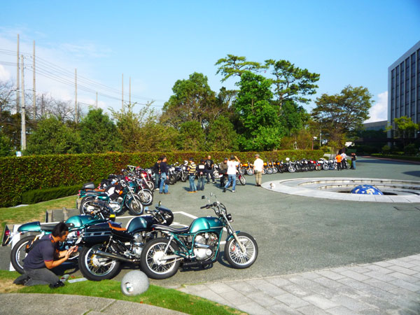 初日はお天気もよく沢山集まりましたよ。前回を上回る台数で全体を写真に収めることができないっす。